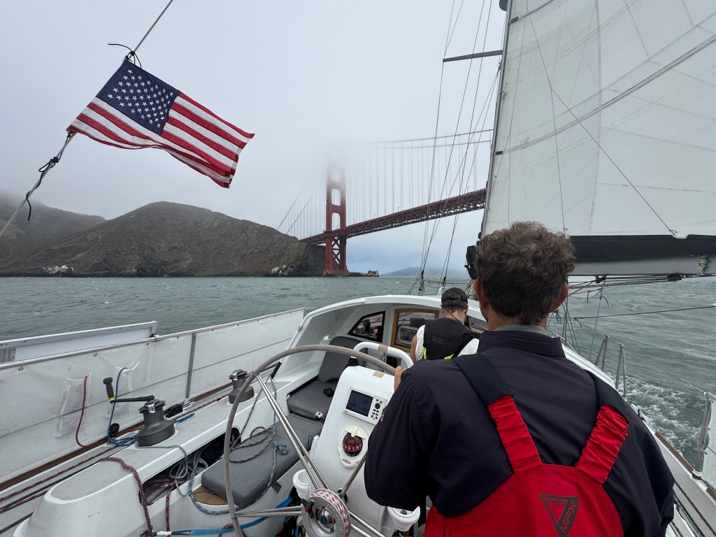 The morning of 2 September dawned with not much wind, but the welcome sight of the Marin Headlands and Bolinas Bay. By 0700 we raised the mainsail and unfurled the genoa in the hopes that the Golden Gate would deliver some sailing conditions for our arrival.