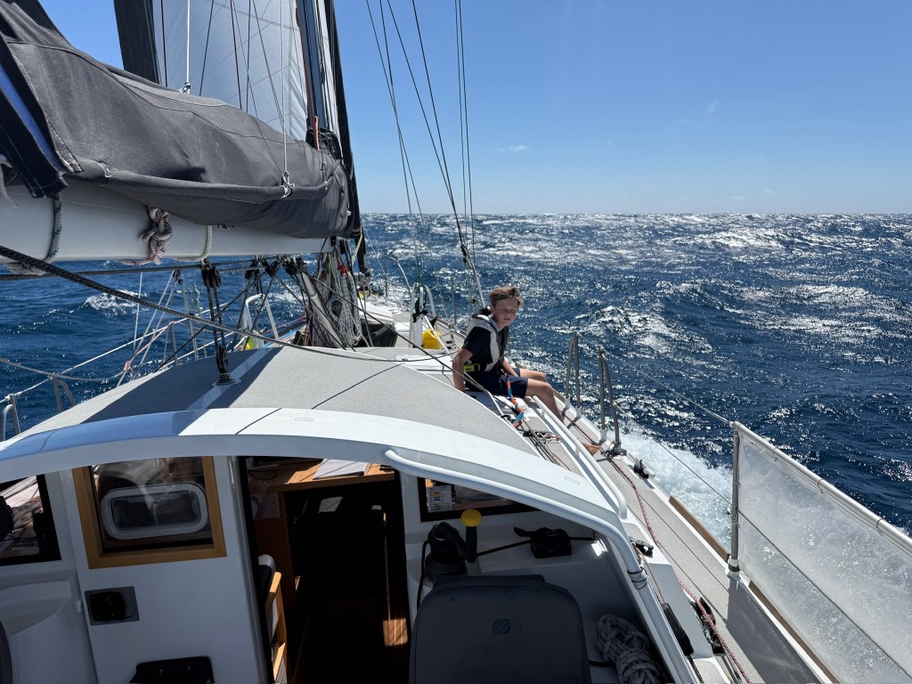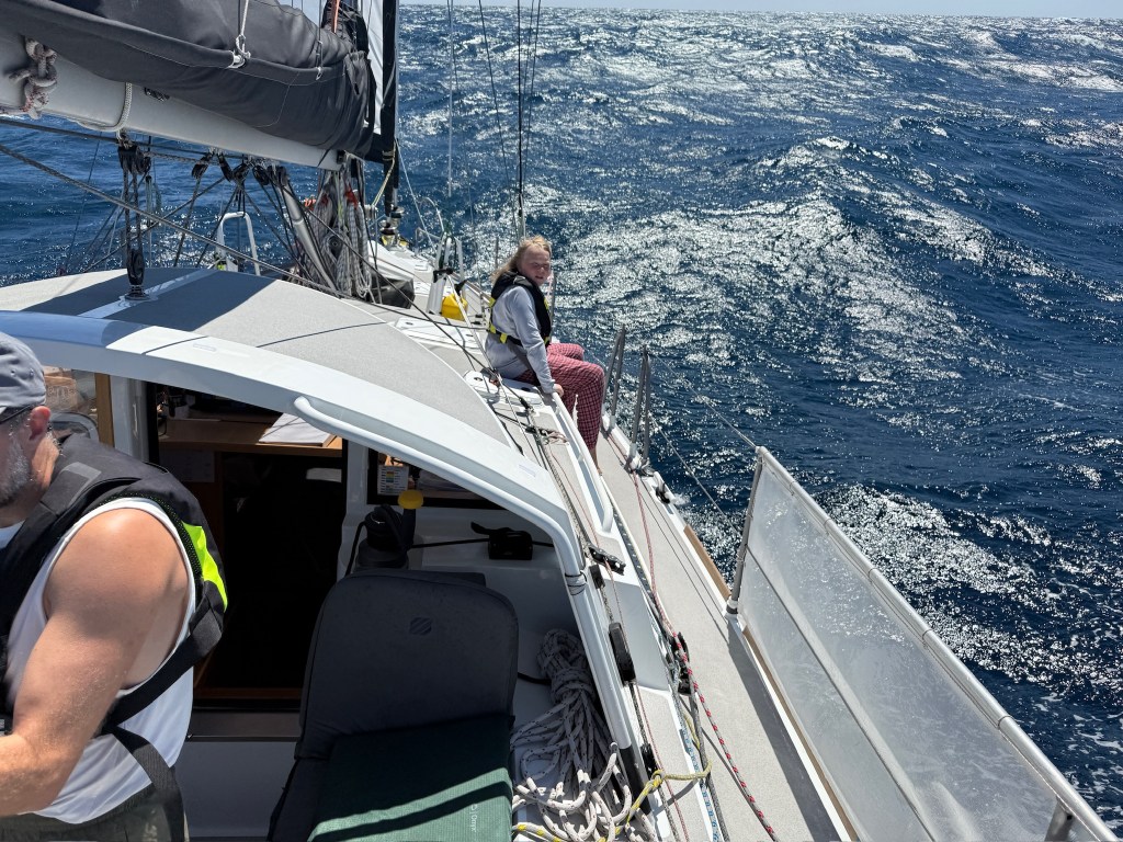 That day grew into a great day of sailing; partly sunny skies, a solid 25 knots from the north west, and gentle following seas. Flyer really hits her stride when the breeze is over 20 and aft of the beam. Just over 24 hours in and it felt like we had already seen quite the variety of conditions.